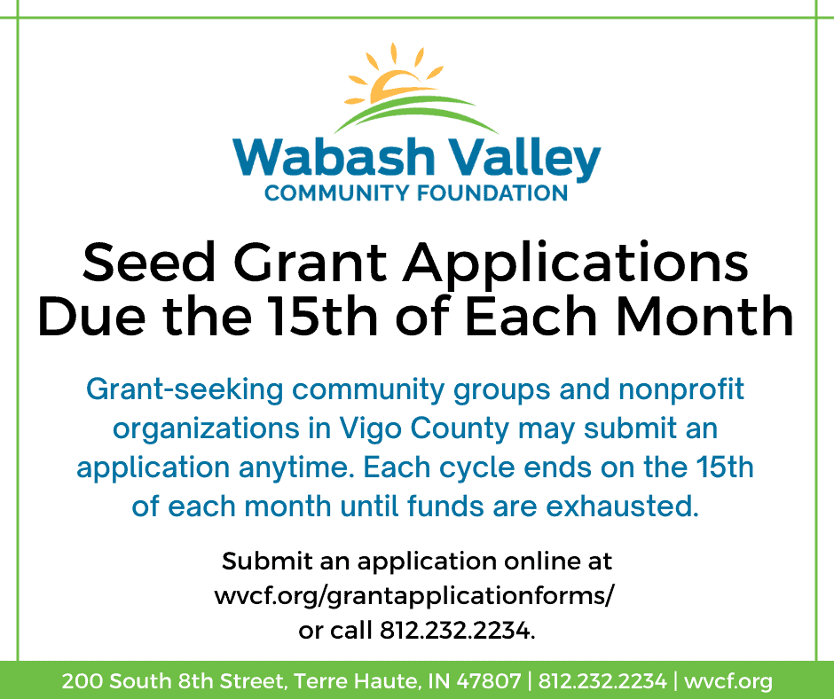 The Community Foundation is now offering Seed Grants to further fulfill the objectives of the Terre Haute Community Plan, “See You in Terre Haute”. Seed grants assist projects in their preliminary stages, helping cover the groundwork costs necessary for larger projects. These grants will help expand programs that are developed to encourage population growth and/or increase per capita personal income. The Wabash Valley Community Foundation is able to provide opportunities and funding for various entities in the community through this “See You in Terre Haute” Community Plan.