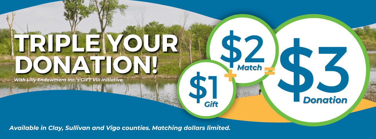 The Community Foundation now has a new matching opportunity to increase its permanently endowed community funds and expand its ability to benefit our three counties. Lilly Endowment Inc., under its GIFT VIII initiative, will contribute $2 for every $1 given to an unrestricted community endowment fund – up to $1.25 million in Vigo County and $375,000 in Clay and Sullivan counties! GIFT VIII is a transformative opportunity for our communities and the Community Foundation as it has the potential to increase the unrestricted community endowments by more than $5 million! This would allow the Community Foundation to provide more and larger grants focusing on community enhancement and improvement.